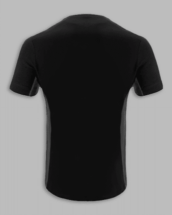 T-shirt 100 % coton à col rond côtelé. Texture à effet mélangé sur les manches et les épaules, empiècements ton sur ton sur les côtés et sous les manches.